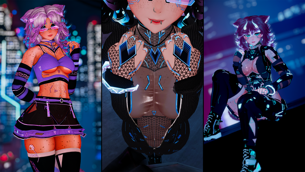 • Glitch FX | Cyber Mask | Glasses | Earrings | Horns (3 Shapes + Size) | Armor (Top + Legs + Arms + Spine) | Right - Left Hand Accessories | Hand Mirrors + Wires | Necklace | Choker | Tummy + Nip Piercings | 6 Face Piercings | Body Cork