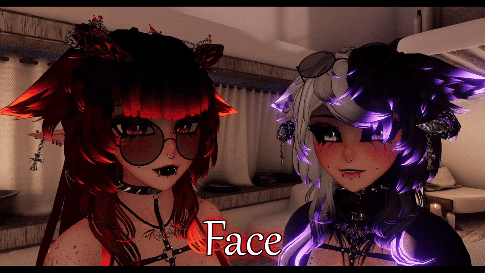 - Glasses | Earrings | Horns (Top & Bottom, Angle, Physbones) | Choker | Harness (Top + Bottom + Legs + Arms) | Right - Left Hand Accessories | Necklace | Tummy + Nip Piercings | 6 Face Piercings | Body Cork