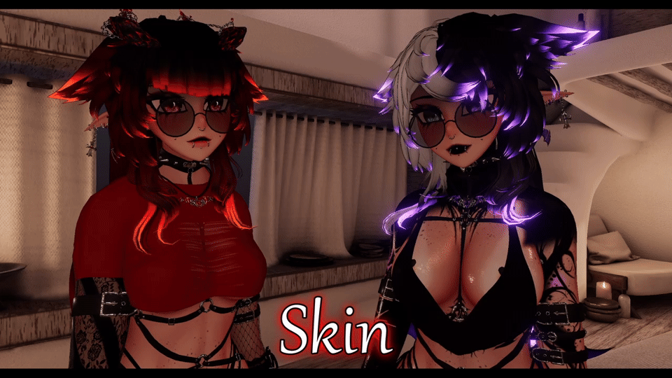 Head (edited by me) : Starlynn | Hair Texture: Cici | Body (edited by me): Zinpia | | Face Textures: Sakuu | Body Textures: Lpb | Tattoos: Nahki | Wet Skin : VeronicaJae | Kitty Hair: Weeeby | Hair: Minki Saikura Flexuh | Arm Belts: cringy | Shorts, Choker, Tail Ears : Vinuzhka | Gloves: winksvr | Socks: aikavr | Shoes: Otho3d | Eyes: Mizukiiiix | Lighting System: arkhype | Limbs Scaling: nanochip | GoGo Loco: franada | Wholesome | VRCFT: adjerry91 | CGE: Hai